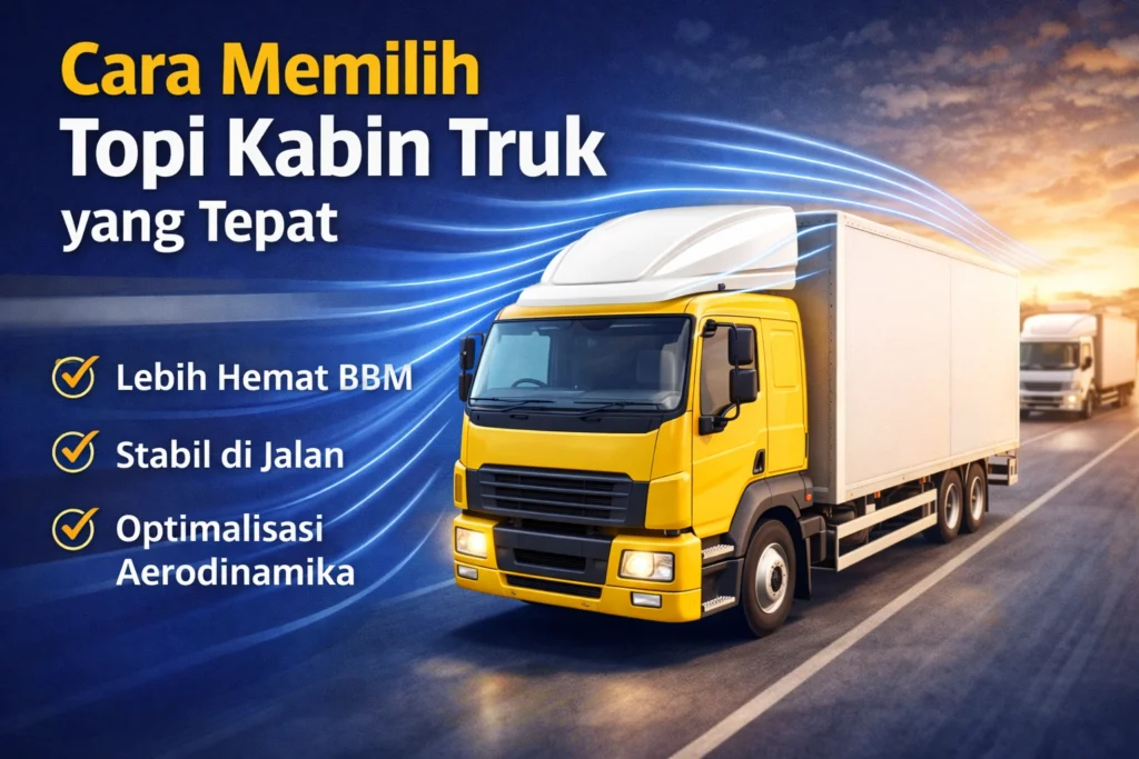 Cara Memilih Topi Kabin Truk yang Tepat sering menjadi pertanyaan bagi pemilik armada, pengusaha logistik, maupun driver truk. Banyak orang memasang topi kabin hanya karena tampilan atau mengikuti tren. Padahal, pemilihan yang kurang tepat bisa membuat fungsi aerodinamika tidak maksimal.